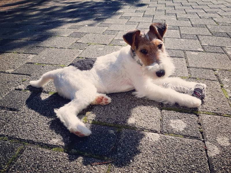 Es ist eine Drahthaar Foxterrier Hündin Namens "Rylie" und sie wurde am 28.05.2021 geboren .